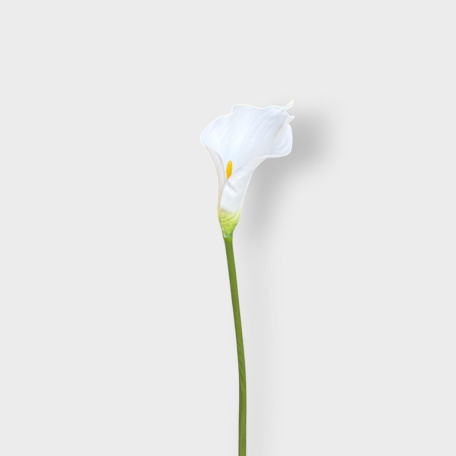 Bring a dash of colour to your interior space with this gorgeous faux calla lily in white. Easily maintained this artificial flower stem will bring lasting beauty into your home. Create a one of a kind artificial arrangement mixing with other stems or place in a decorative vase on its own. For longer lasting faux flower stems keep out of direct sunlight.