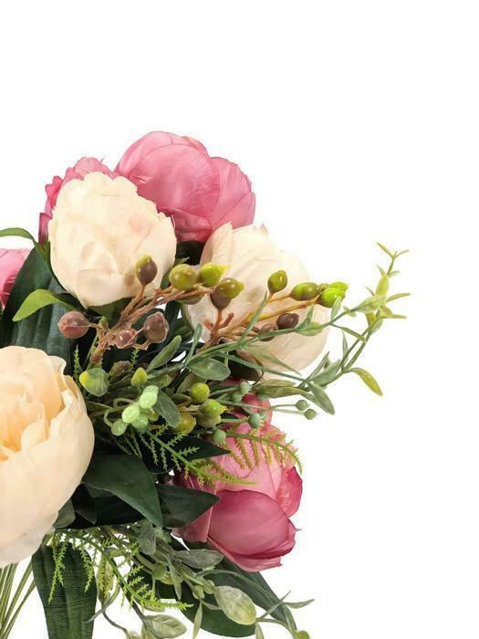 This bunch comes with 4 large blooms and 2 small buds and lots of greenery